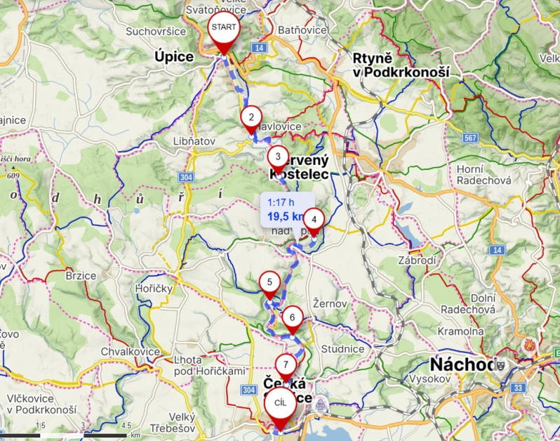 Začínáme v Úpici, kde doporučujeme návštěvu roubené Dřevěnky z roku 1559 a Hvězdárny, kde můžete nahlédnout do tajemství vesmíru.
